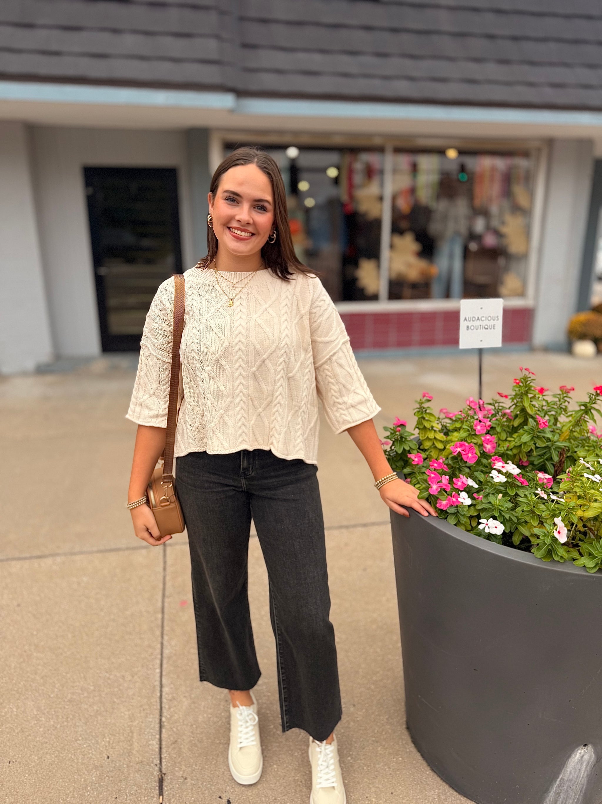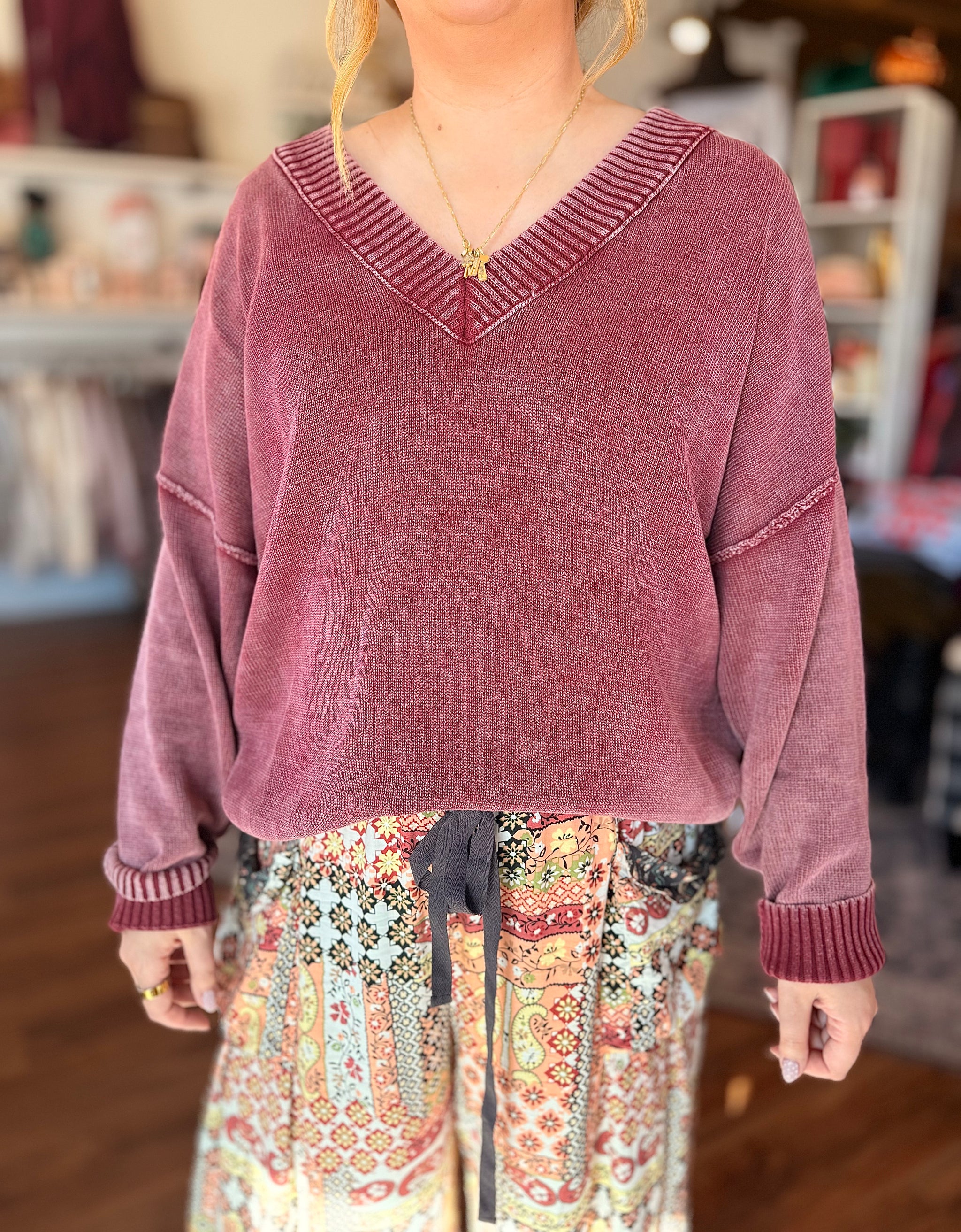Solid mock neck 3/4 sleeve knit top featuring relaxed silhouette. Unlined. Knit. Non-sheer. Lightweight. Fabric Content 100%VISCOSE