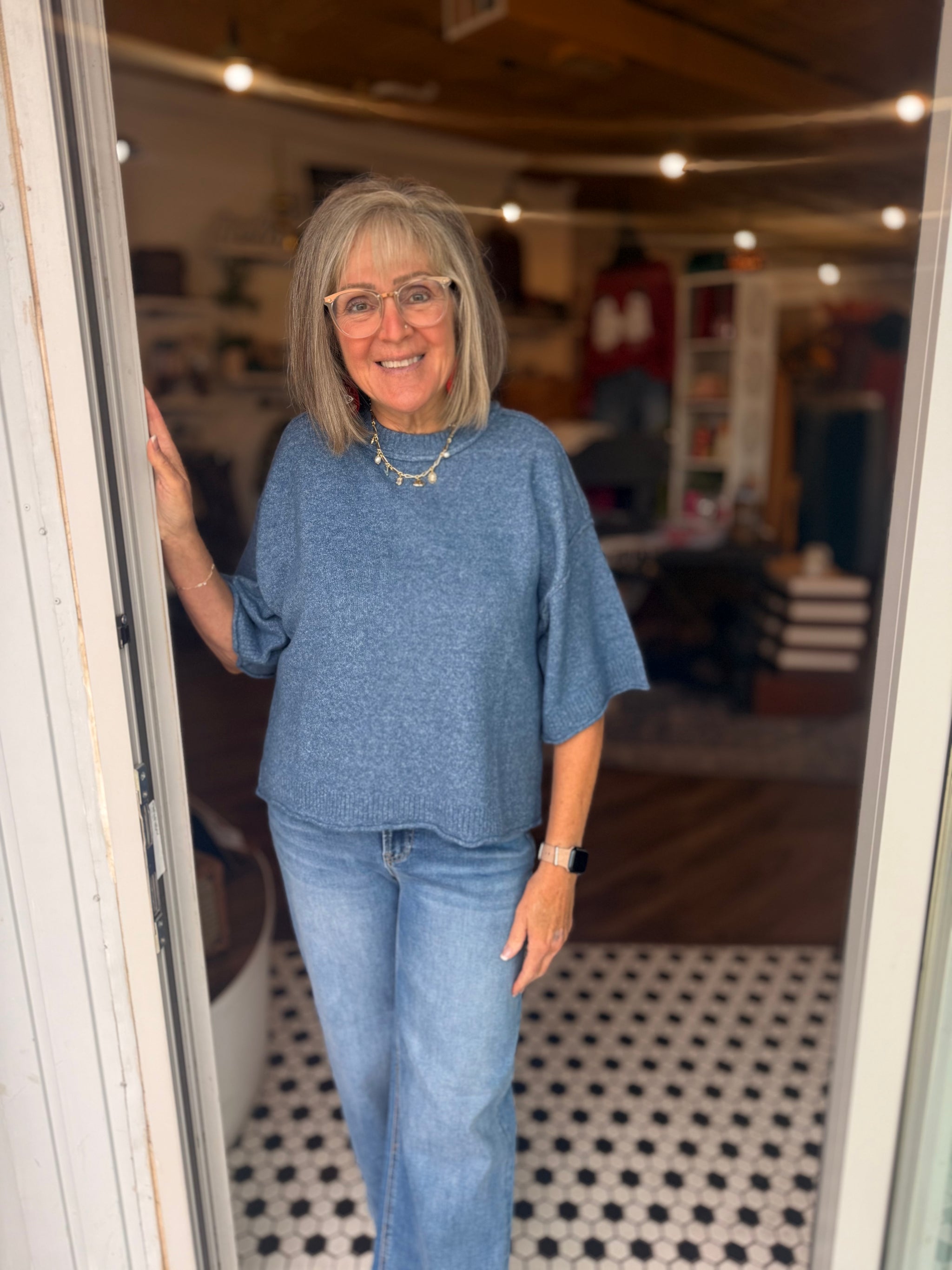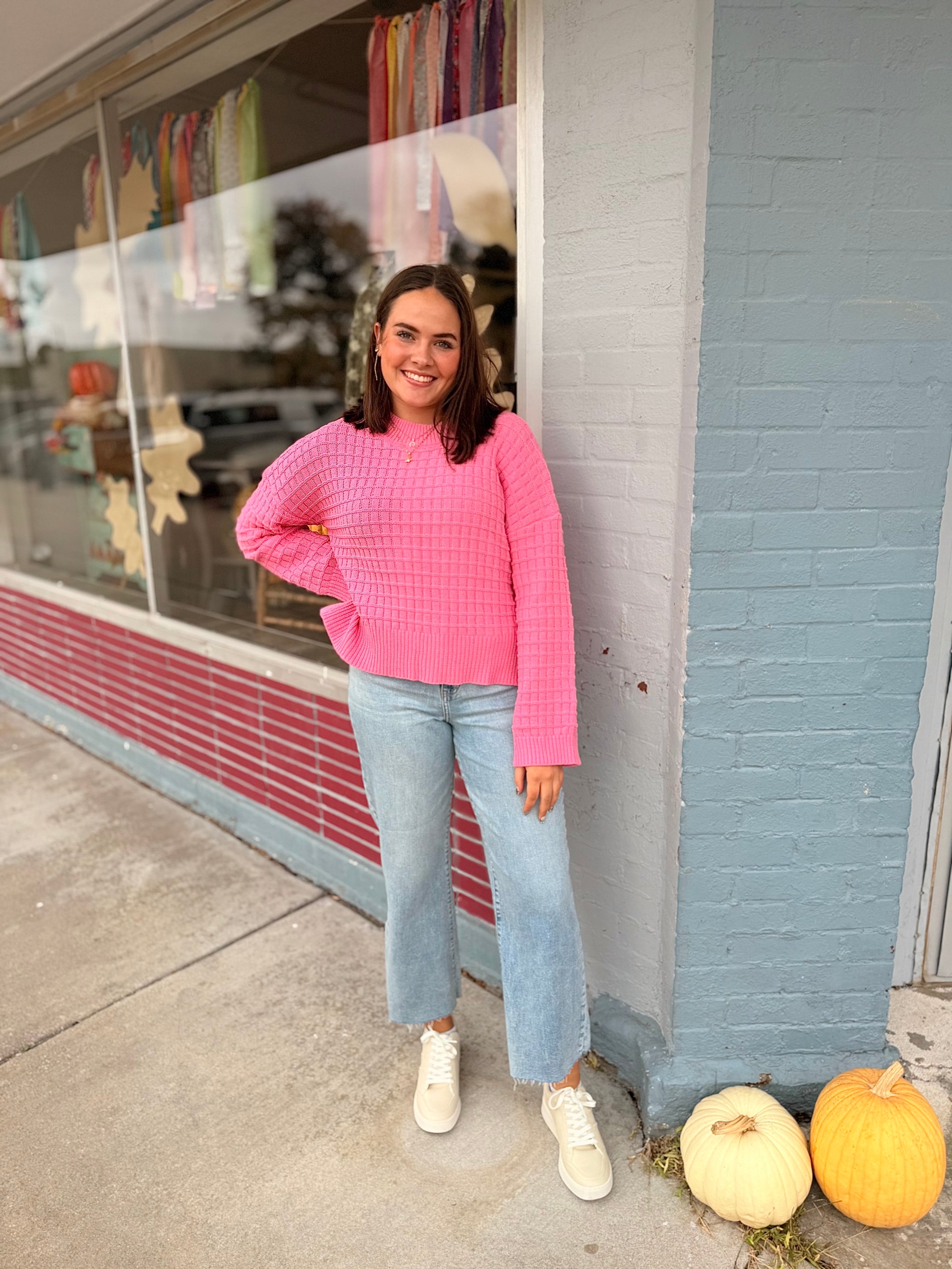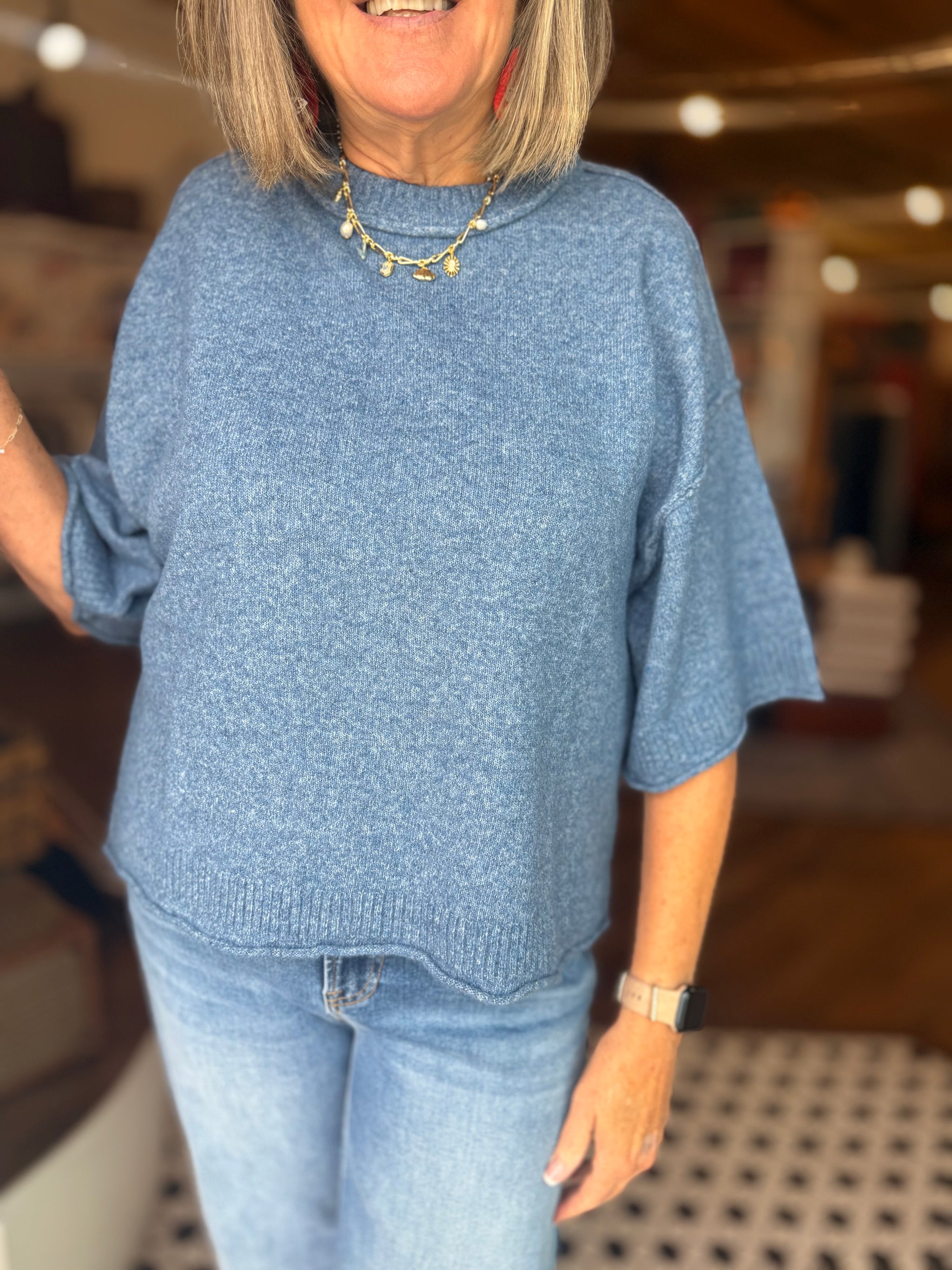 Fabric Content  60%COTTON 40%ACRYLIC Solid sweater knit ¾ sleeve pullover knit top. Unlined. Knit. Non-sheer. Lightweight.