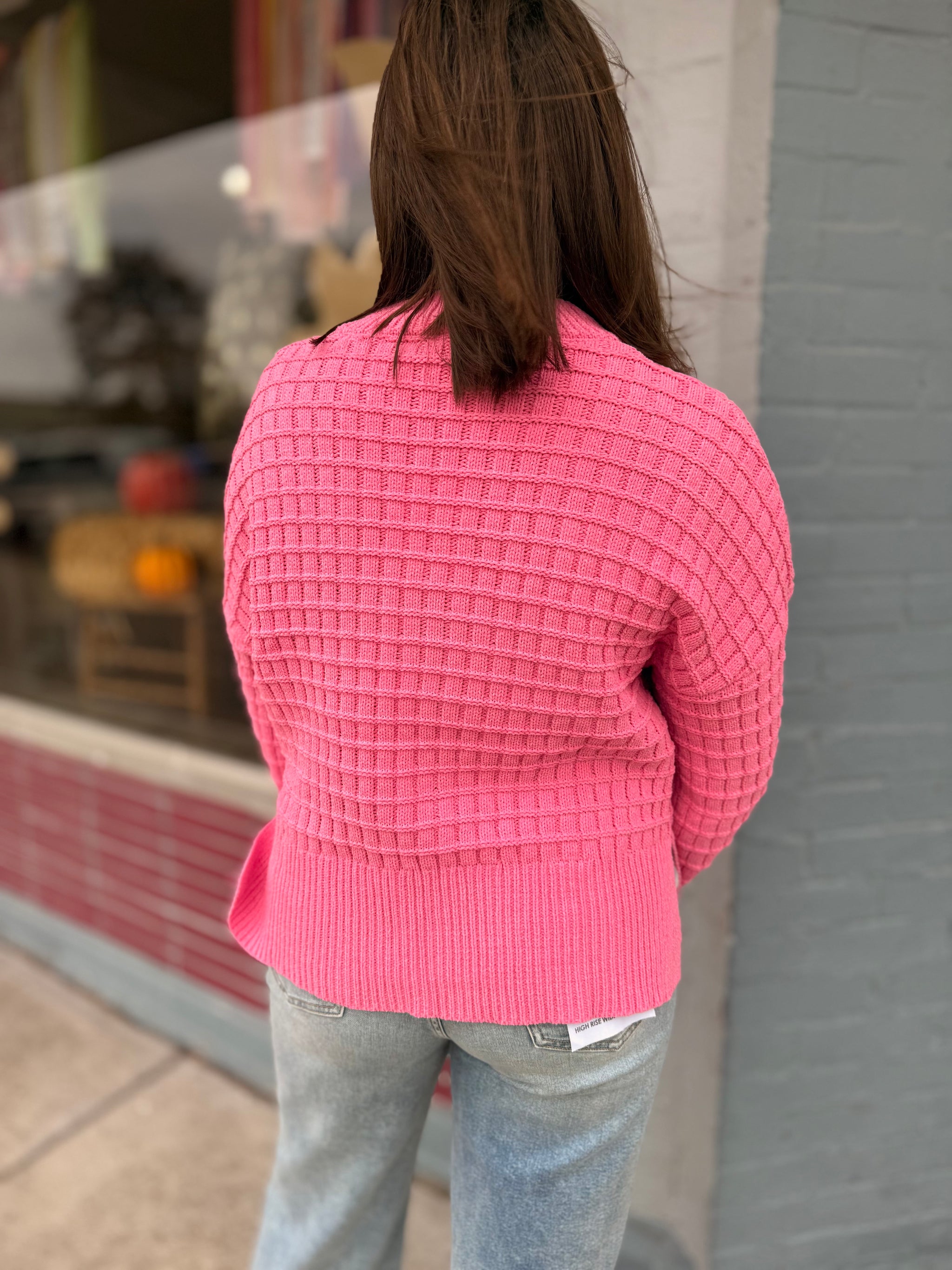 Solid mock neck 3/4 sleeve knit top featuring relaxed silhouette. Unlined. Knit. Non-sheer. Lightweight. Fabric Content  100%VISCOSE