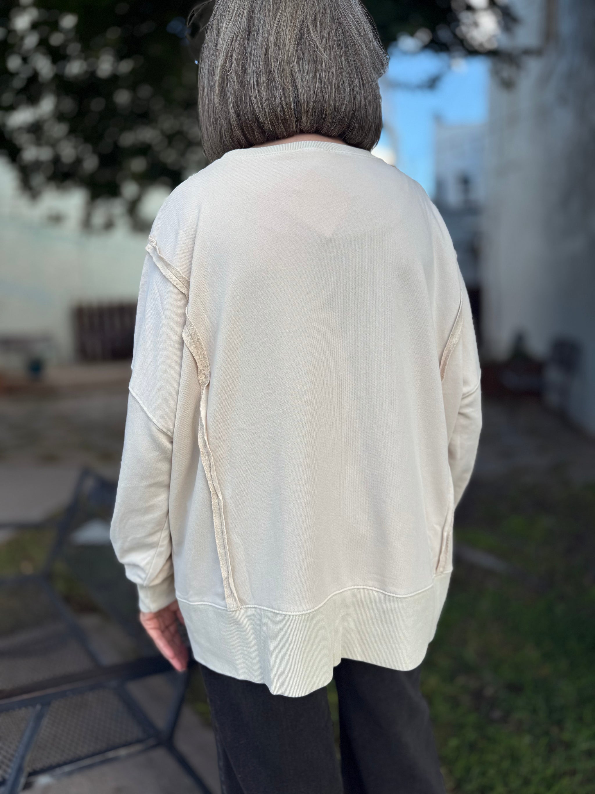 Bone Patchwork Floral Peace Sign Sweatshirt